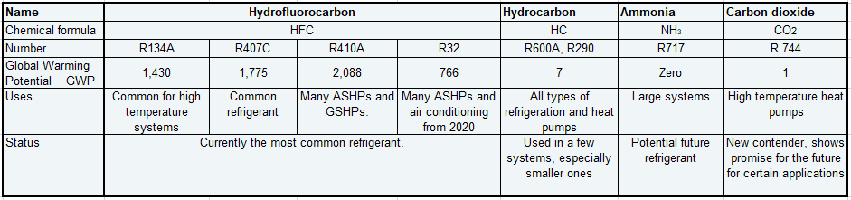 REFRIGERANTS (the working fluid inside the heat pump)