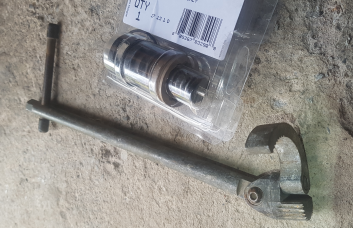 Below is my modified replacement next to the old sticking one. To the right looks like the correct replacement along with the removal tool/spanner.